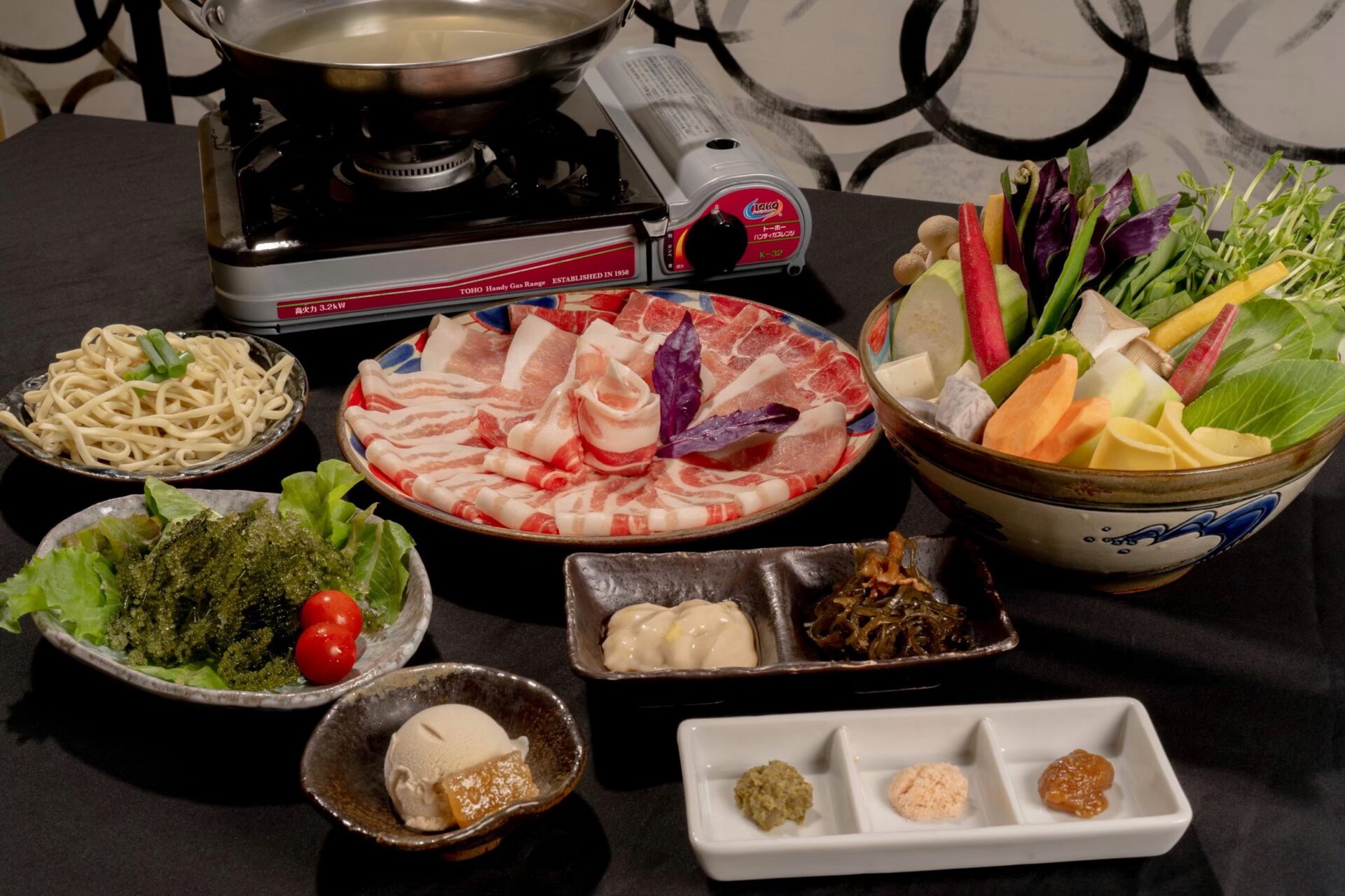 当店では、旬の島野菜と目利きで厳選した希少なアグー豚をしゃぶしゃぶでご堪能いただけます。